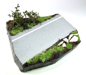 瀬川たかし監修のジオラマ製作、入門キットに道路素材が登場!道路パーツは150mm×60mm、鮮やかな緑の情景を疾走するイメージ、手のひらサイズのミニカーベースが完成します。 (ミニカーは付属しません。)両面テープ素材を採用することで、さらに安全かつ簡単なメイキングをお楽しみいただけます。植栽各種、道路を彩る白線パーツも付属。1/60〜1/72スケール程度のミニカーにピッタリなサイズ感です。既存のDIORAMA ONEシリーズと組み合わせることで、さらにジオラマの世界が広がります。