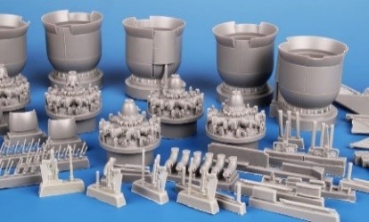 また着陸装置も新たに設計した強化レジンで再現されています。これらにエッチングとバキュームキャノピー、2種デカールが付属しています。完成時には全長約588mm、全幅約1150mmとなります。