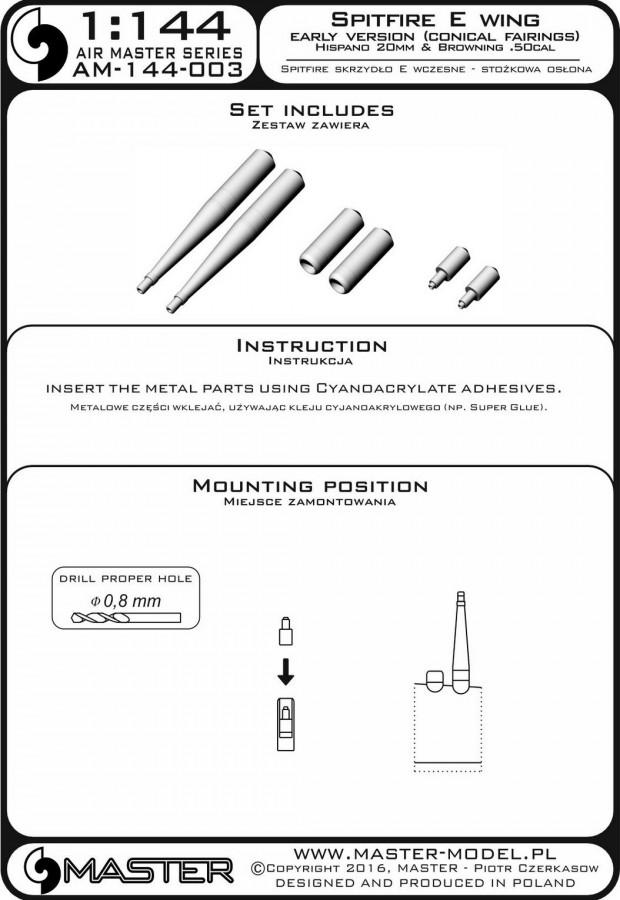MASTER[AM-144-003]Supermarine Spitfire E wing early (conical fairings) - Hispano 20mm & Browning .50cal in fairings