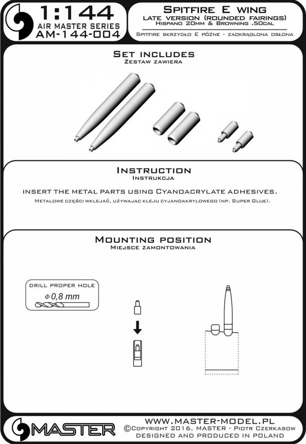 MASTER[AM-144-004]Supermarine Spitfire E wing late (rounded fairings) - Hispano 20mm & Browning .50cal in fairings