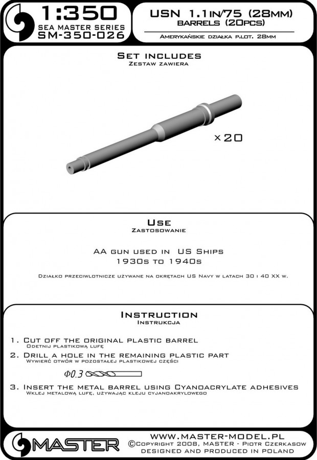 MASTER[SM-350-026]USN 1.1"/75 (28 mm) barrels (20pcs)