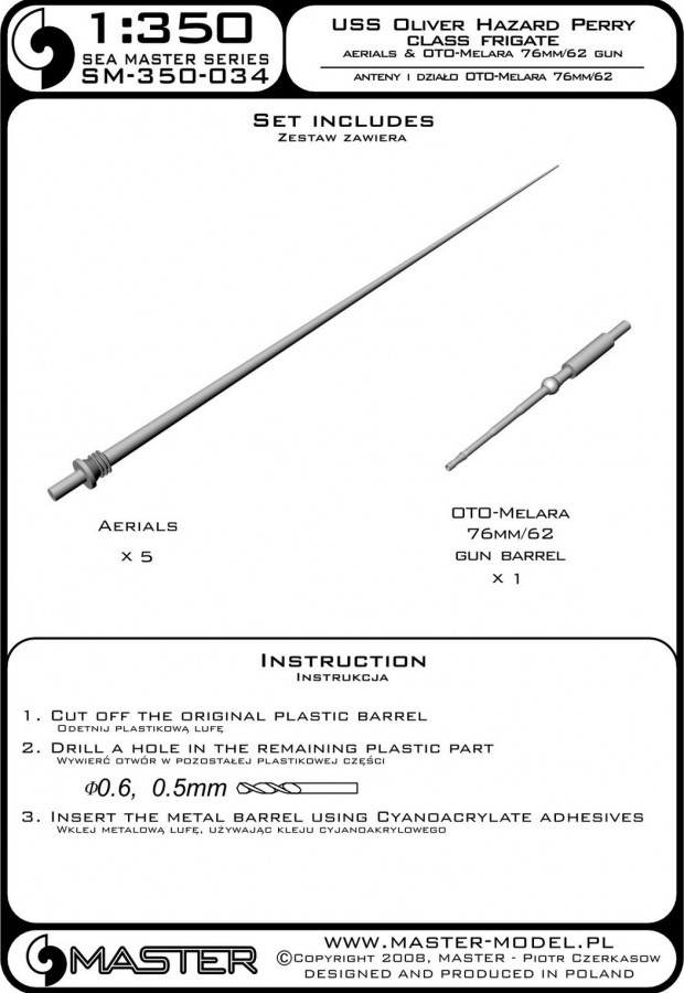 MASTER[SM-350-034]USS Oliver Hazard Perry class frigate - aerials & OTO-Melara 76mm/62 gun