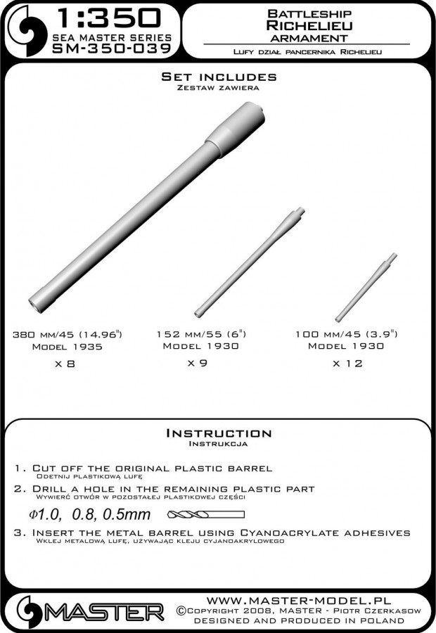 MASTER[SM-350-039]Richelieu armament - 380mm(8pcs), 152mm(9pcs), 100mm(12pcs) barrels