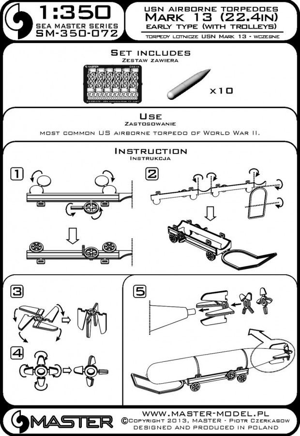 MASTER[SM-350-072]USN Airborne torpedoes Mark 13 (22.4in) with trolleys - early type (10pcs)