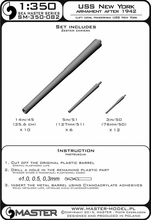 MASTER[SM-350-082]USS New York BB-34 armament (after 1942) - 14in/45 (10pcs), 5in/51 (6pcs), 3in/50 (12pcs) barrels