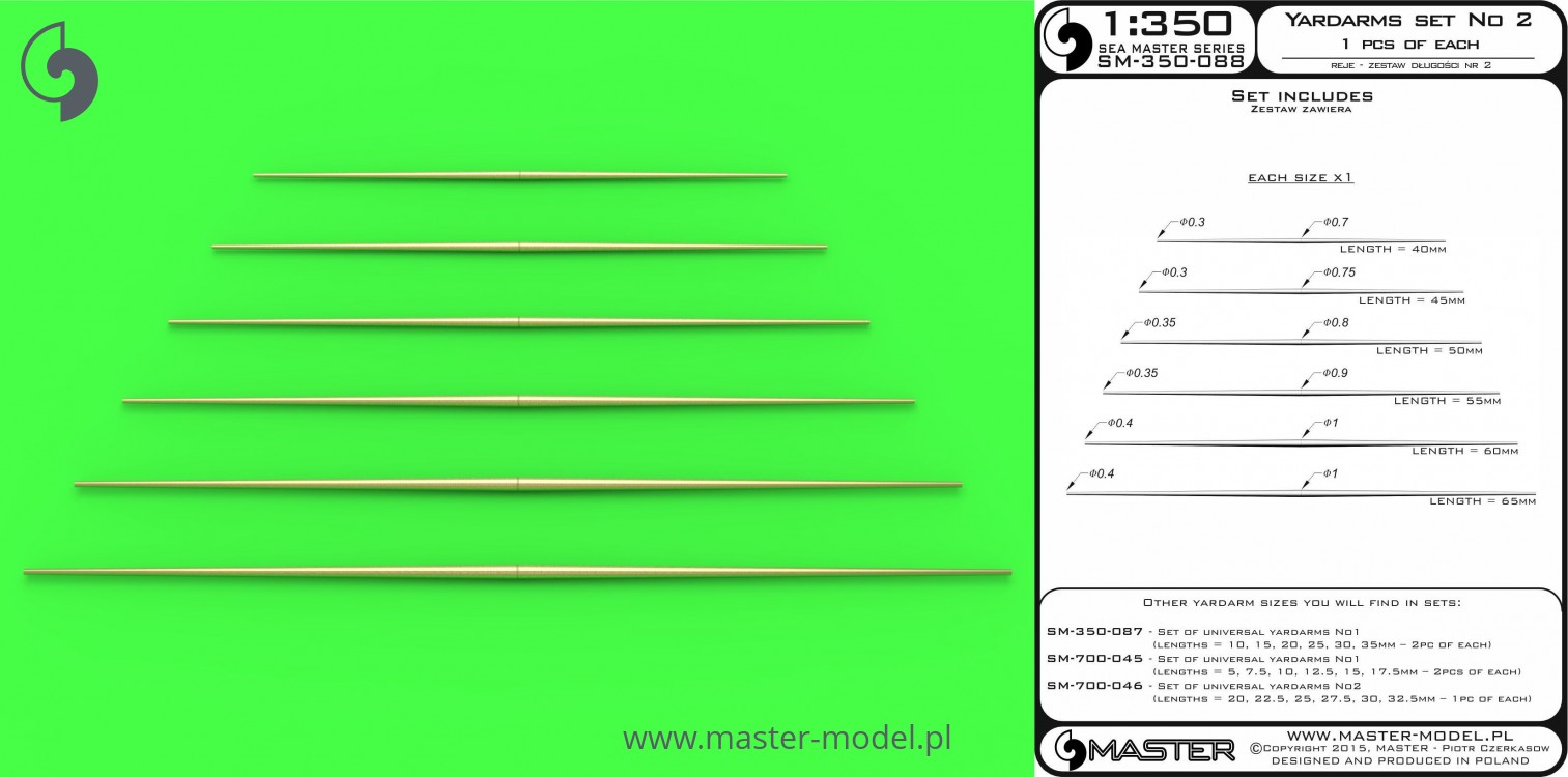 MASTER[SM-350-088]Set of universal yardarms No2 (lengths = 40,45, 50, 55, 60, 65mm - 1pc of each)