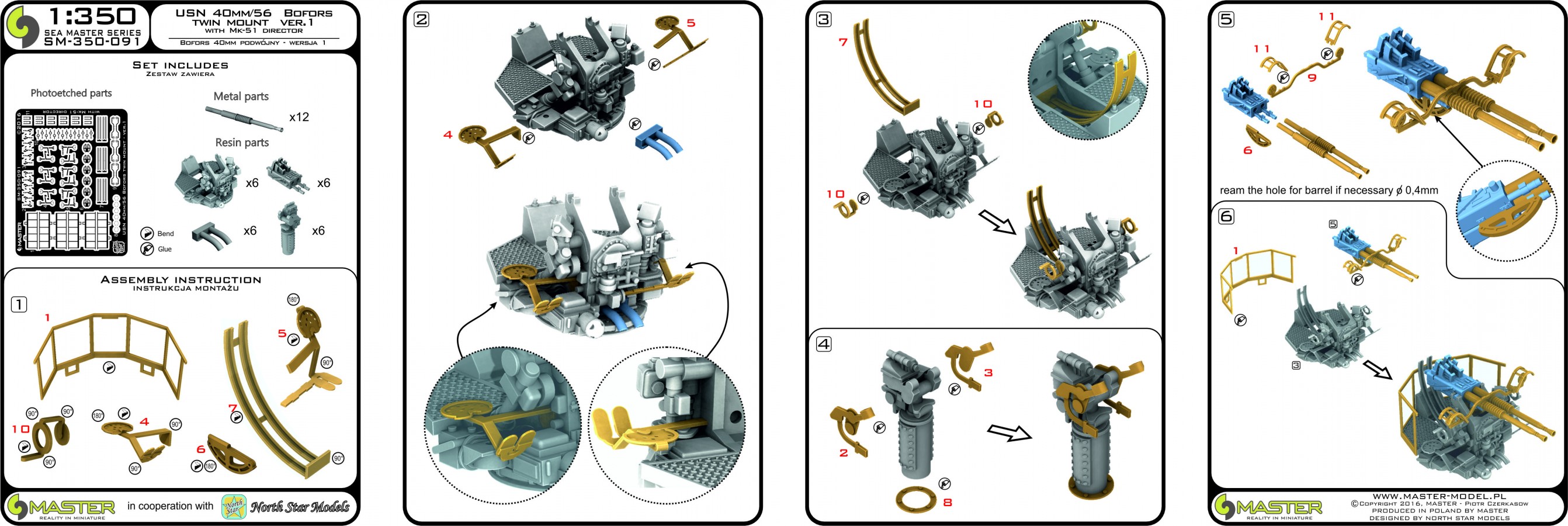 MASTER[SM-350-091]USN 40 mm/56 Bofors twin mount ver.1 / with Mk-51 director - (resin, PE and turned parts) - (6pcs)
