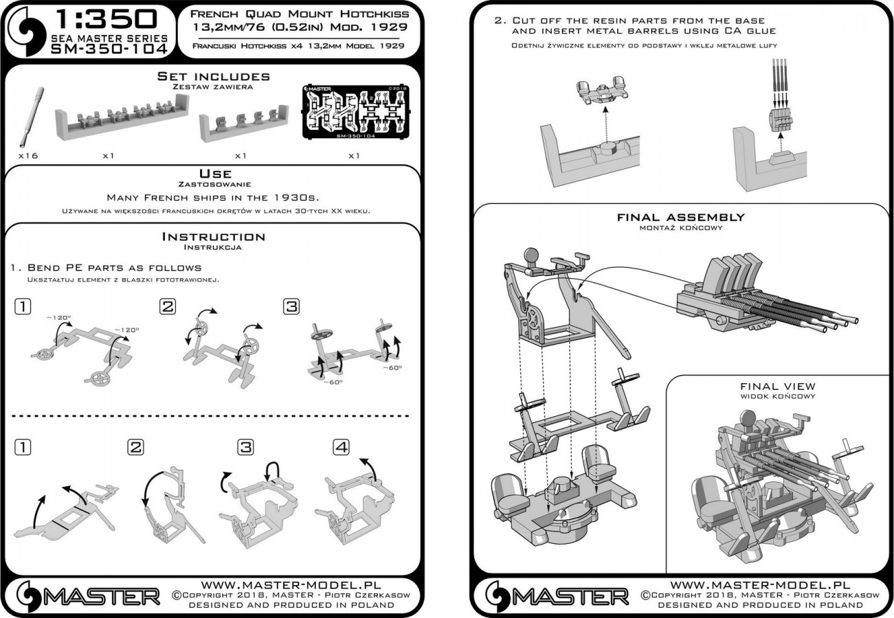 MASTER[SM-350-104]French Quad Mount Hotchkiss 13,2mm/76 (0.52in) Model 1929 - (resin, PE and turned parts) - (4pcs)