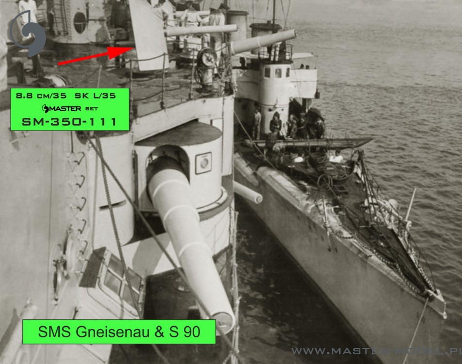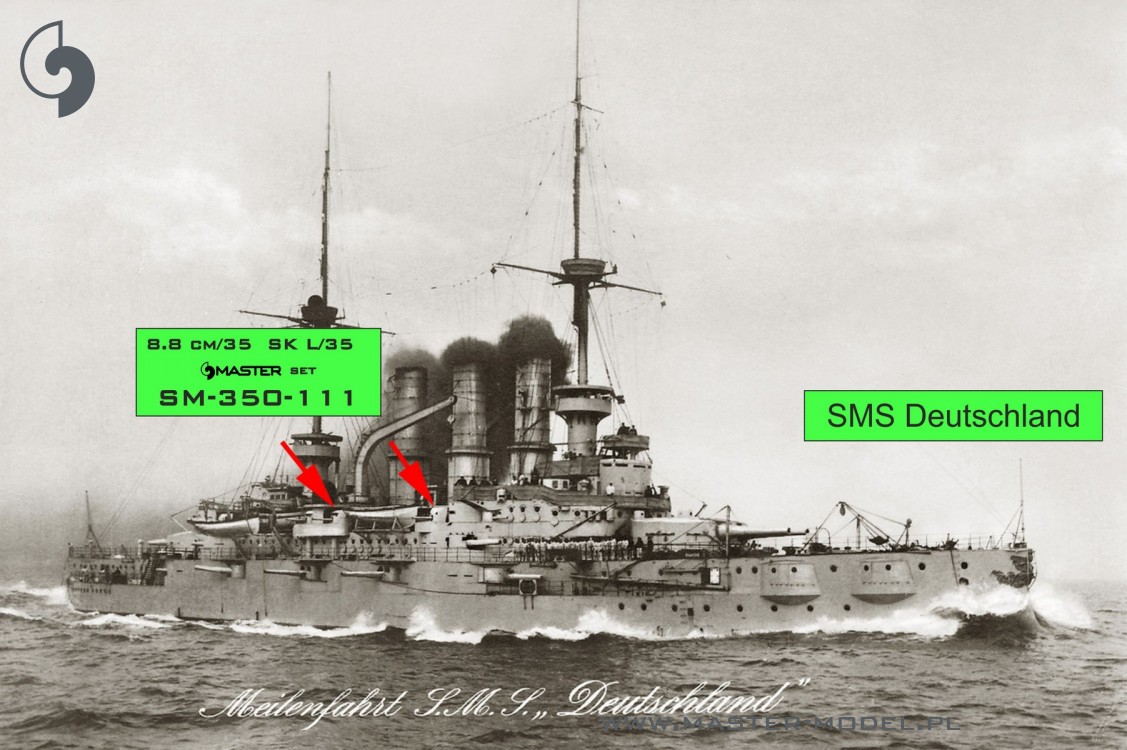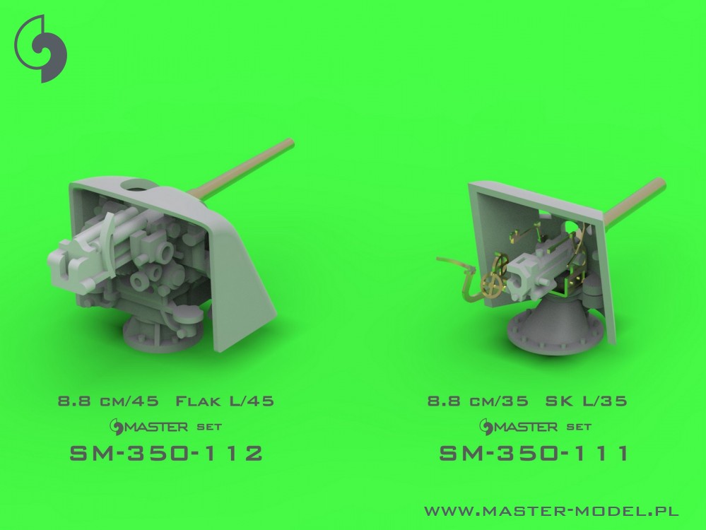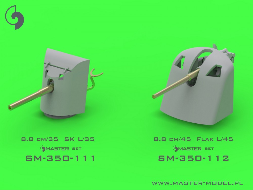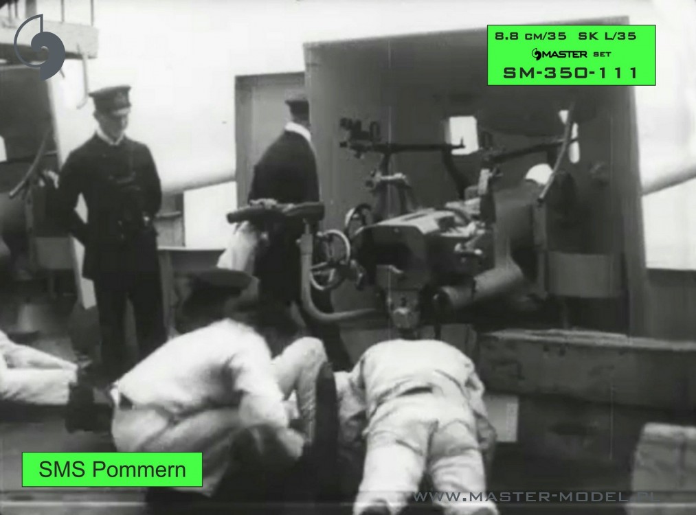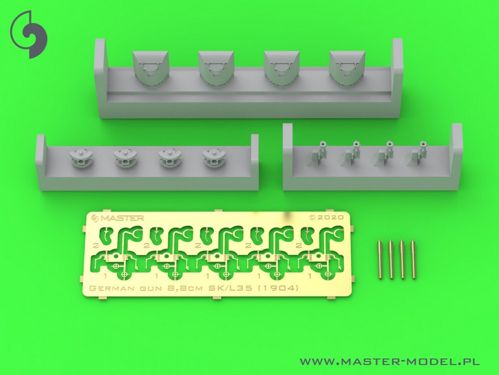MASTER[SM-350-111]German gun 8,8cm/35 (3.46in) SK L/35 - used in early 1900's (e.g. Schlezwig-Holstein 1908) - (resin, PE and turned parts) - (4pcs)