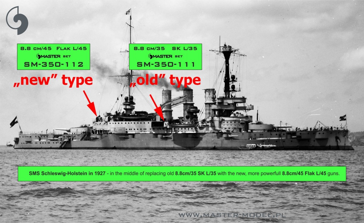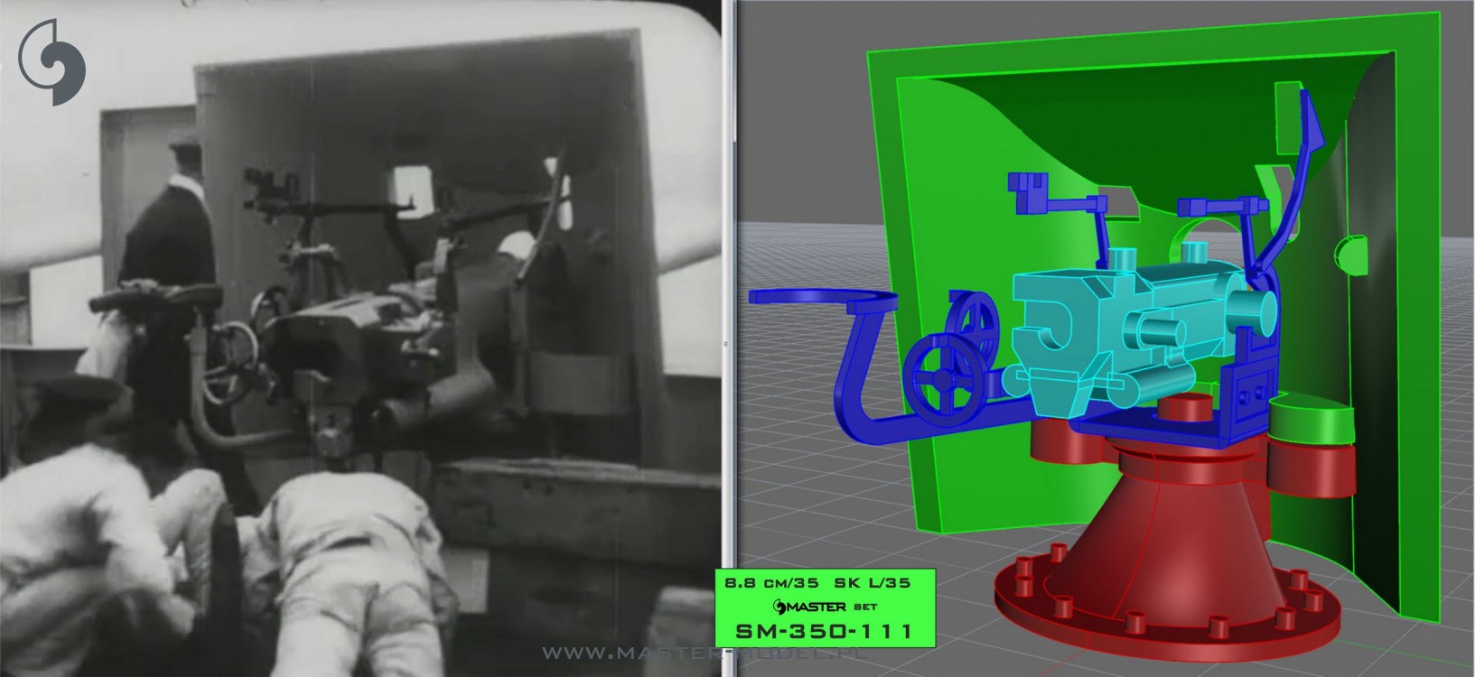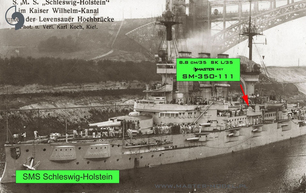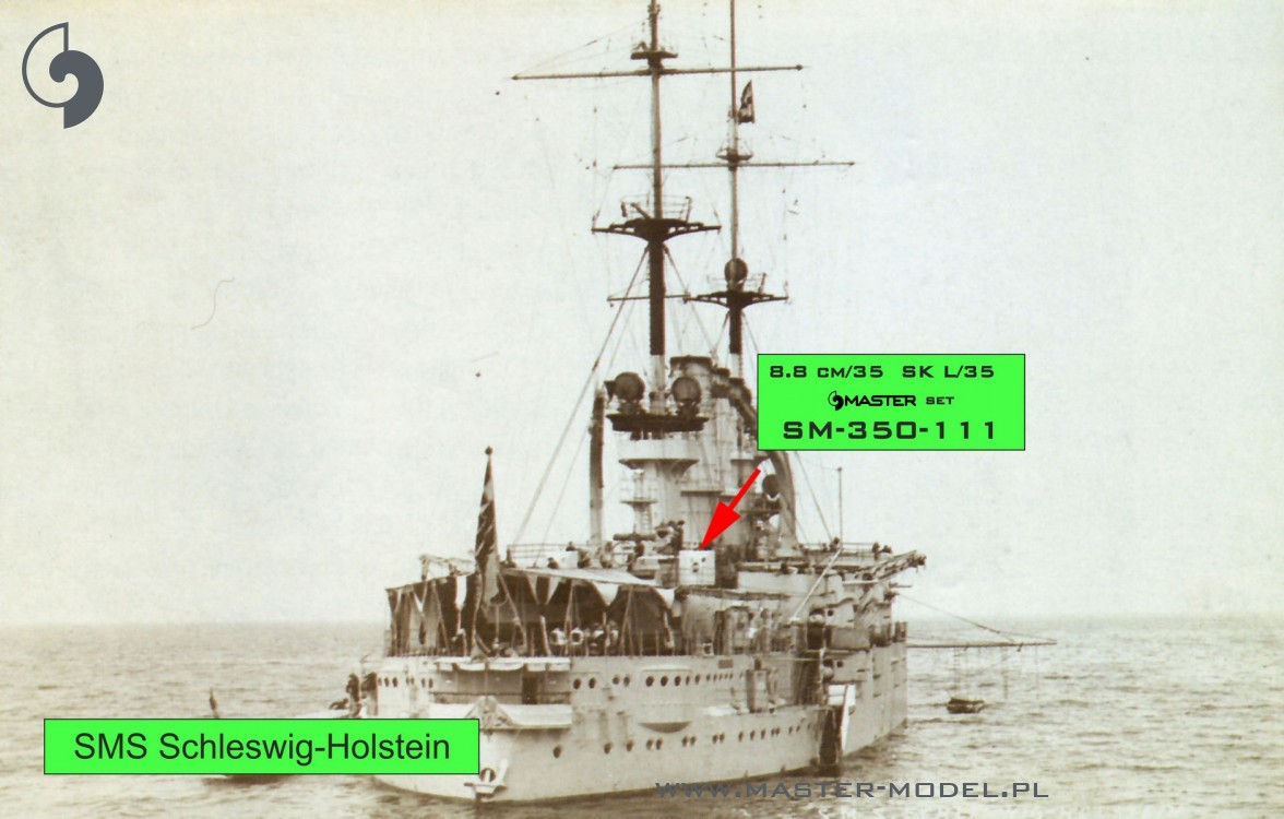 MASTER[SM-350-111]German gun 8,8cm/35 (3.46in) SK L/35 - used in early 1900's (e.g. Schlezwig-Holstein 1908) - (resin, PE and turned parts) - (4pcs)