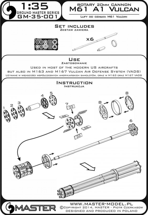 MASTER[GM-35-001]1/35 現用 アメリカ M61A1六連装バルカン砲 20mm機関砲身6本/エッチングパーツ付