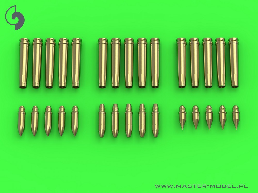 MASTER[GM-35-019]1/35 WWII ドイツ Flak 30/38/KwK 30/38用 2cm機関砲弾(cal. 20x138B) 空薬莢(15個入)/弾頭3種(各5個入)