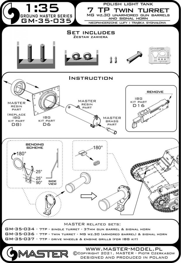 MASTER[GM-35-035]1/35 WWII ポーランド 7TP軽戦車 双砲塔型用 wz.30重機関銃 銃身(非装甲タイプ)/警笛セット(IBG用)