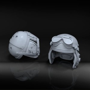 第二次大戦のアメリカ軍戦車兵が装着していたM1938タイプのタンカーズ・ヘルメットを再現しています。頭上部の通気口、固定用ストラップ、両耳部分の無線用レシーバー部はもちろん、内部のインナーもリアルに造形されています。額のゴーグルの有無により2種類、各1個ずつをセットしています。