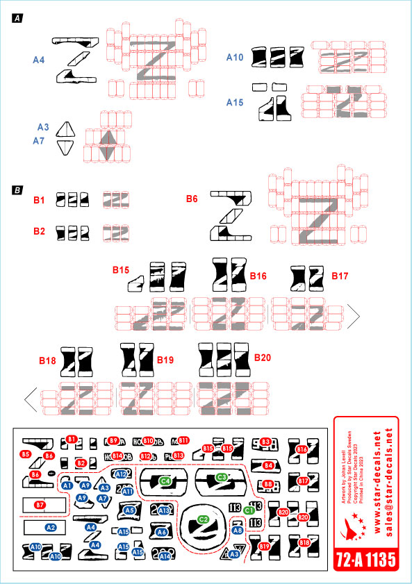 2022年のウクライナ侵攻で、ロシアの傀儡国であるドネツク人民共和国(DPR)が運用しているT-72B(Mod.1985)戦車とBMP-1歩兵戦闘車のマーキングを収録しています。T-72B(Mod.1985) 2種類、BMP-1P 1種類、計3種類の塗装例を、車体各部に描かれた「Z」の識別マーキングもデカールで用意されています。