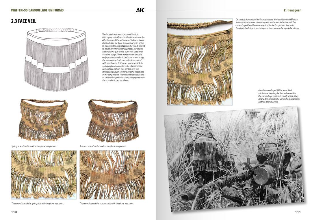 388ページに及ぶ大きな書籍には、迷彩服や迷彩カバーなど1095枚のカラー写真と、160枚のモノクロ写真、その他3枚のカラー写真が収められています。