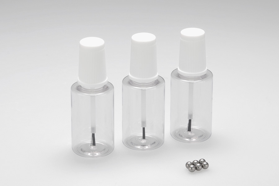 - 材料の粘度にあわせてステンレス球を入れ、使用前にボトルを振って中の材料をかくはんすることができます。