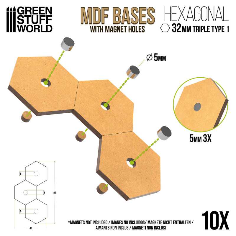 グリーンスタッフワールド[GSWD-12344]MDF製 六角形型3連ベースセット タイプ1(直径32mm) 10枚入
