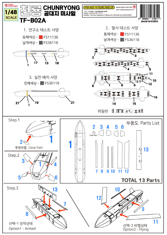 トリファクトリー[TF-B02A]1/48 現用 韓国空軍 チェンリョン長距離空対地ミサイル テストバージョン
