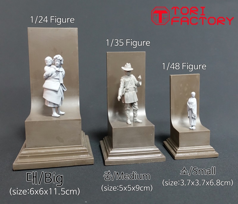 1/48スケール程度の単体フィギュアをディスプレイするのに最適なミディアムサイズのフィギュアベースです。正方形の高さのあるベースに、継ぎ目のないラウンドした高いバックウォール(背壁)が付いています。