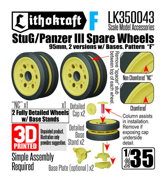 Lithokraft(リソクラフト)[LK350043]1/35 WWII ドイツ III号戦車&III号突撃砲用 95mm幅予備転輪 固定具付 パターンF (2個入)