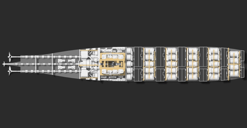 船底の前方に多数が配置された24基のボイラー、2基のレシプロと1基のタービンを併用する主機、3本のプロペラシャフトとスクリューなどを、透視図のようにモデル化しています。3Dプリント製パーツを中心に総パーツ数は300点以上、展示用ベースプレート、エッチングシート1枚、石炭を再現するカット済みサンドペーパーも付属します。