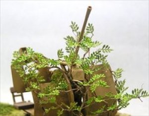 1ミリぐらいの葉が付いた小枝のセットです。葉脈までていねいに加工しました。1/48、1/72の樹木にも使えます。 葉脈も再現されています。