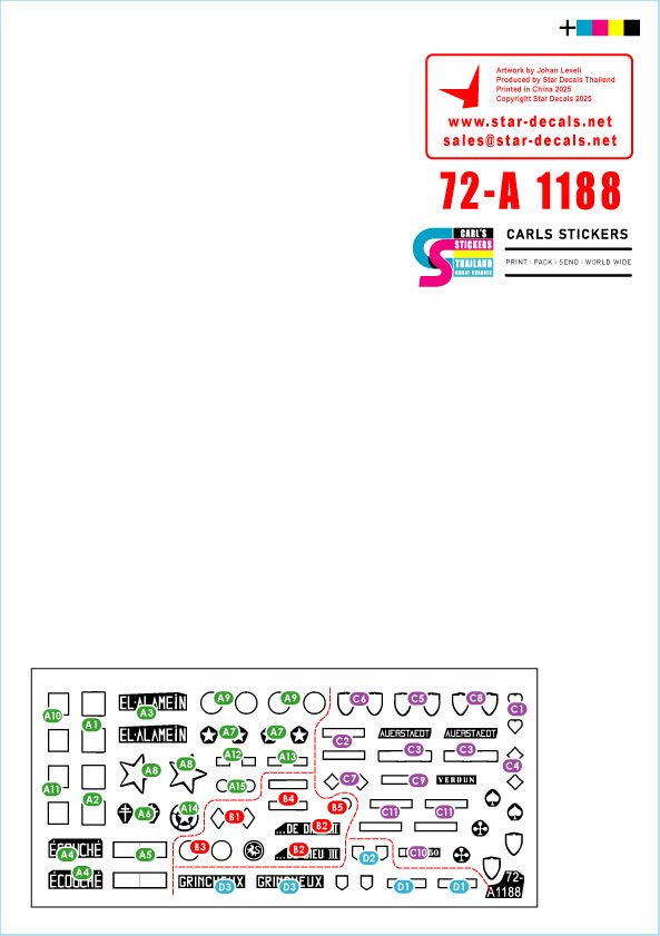 1945-1954年の第一次インドシナ戦争でベトナム、カンボジア、ラオスに派遣されたフランス軍のM5A1スチュアート軽戦車のマーキングを収録しています。砲塔などが異なる初期生産車と後期生産車の全4種類をセレクトし、一部のマーキングはオプションも用意されています。