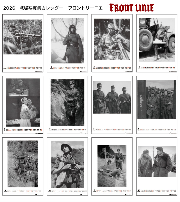 WW2当時撮影された実物写真を精密印刷で カレンダーといたしました。 A3たて型サイズで、人物や装備品のディテールも鮮明に読み取れます。 フィギュアやディオラマモデルの製作のヒントに、モデラーのお部屋の雰囲気作りにお役立ていただけます。