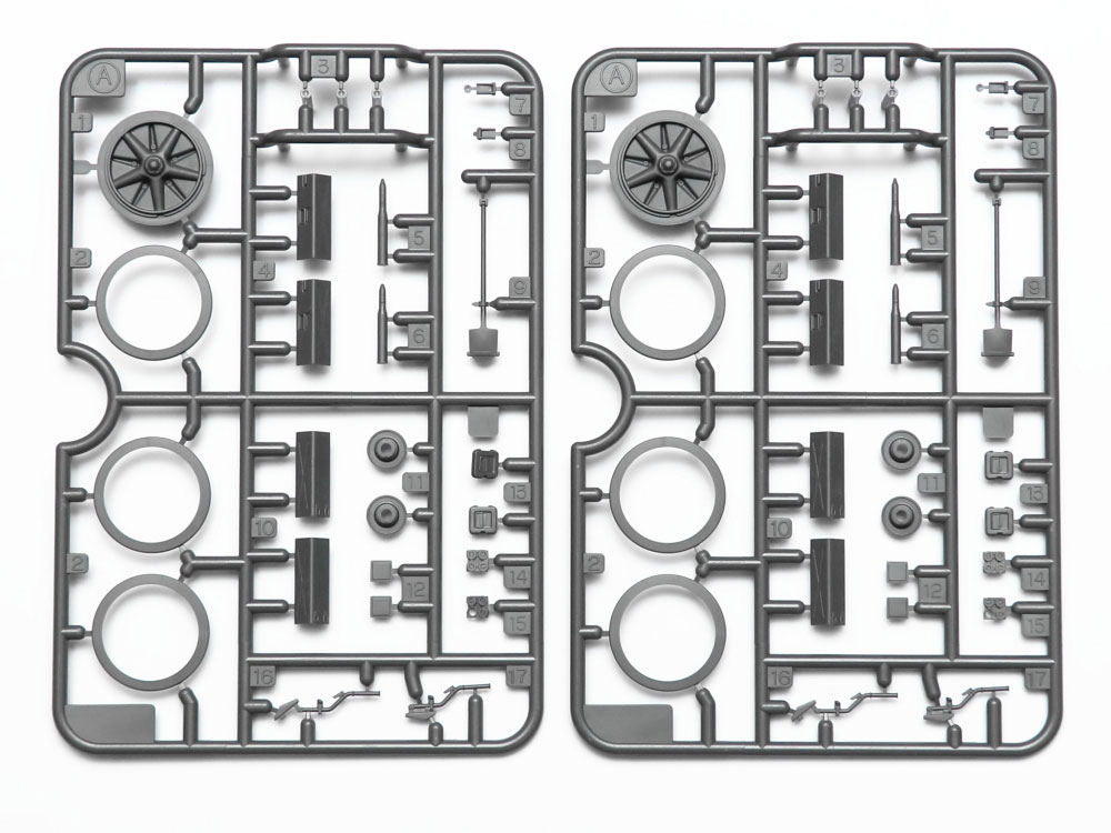 湾曲した装甲板を2枚重ねた防盾やタイヤの溝、シャベルが付いた下部装甲板もリアルにパーツ化。