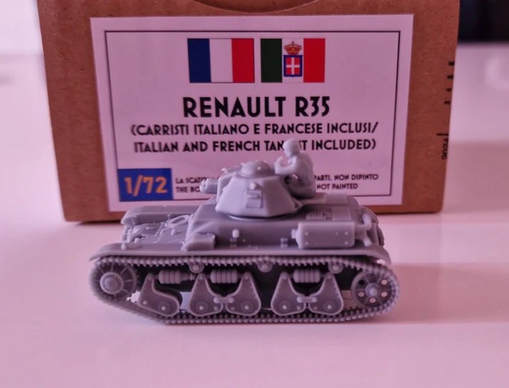 第二次大戦初期のフランス軍歩兵戦車のルノーR35戦車を再現する3Dプリント製フルキットです。乗員フィギュア1体も付属します。