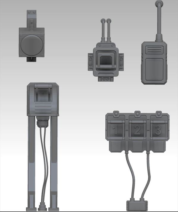 各種の電気機器を制御する屋内外用の電装品を再現する3Dプリント製アクセサリーパーツセットです。床置きスイッチ、壁掛けスイッチなど5種類の電装品を各1個ずつ、計5個をセットします。