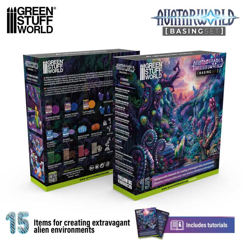 アバター・ワールド ベーシングセットは、エイリアンの植物や蛍光色のマルチカラー、超リアルなクリスタルなどを使って、異世界の風景を作るためのオールインワンセットです。初心者でも扱いやすく、ホビーやウォーゲーム用のモデルに最適。