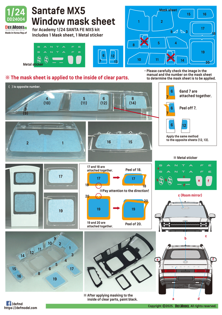 DEF.MODEL[DD24004]1/24 現用 ヒョンデ サンタフェMX5用ウインドウマスクシート/ロゴメタルステッカーセット(アカデミー用) [ご注文締切日 1月9日(金)2026年3月入荷予定]