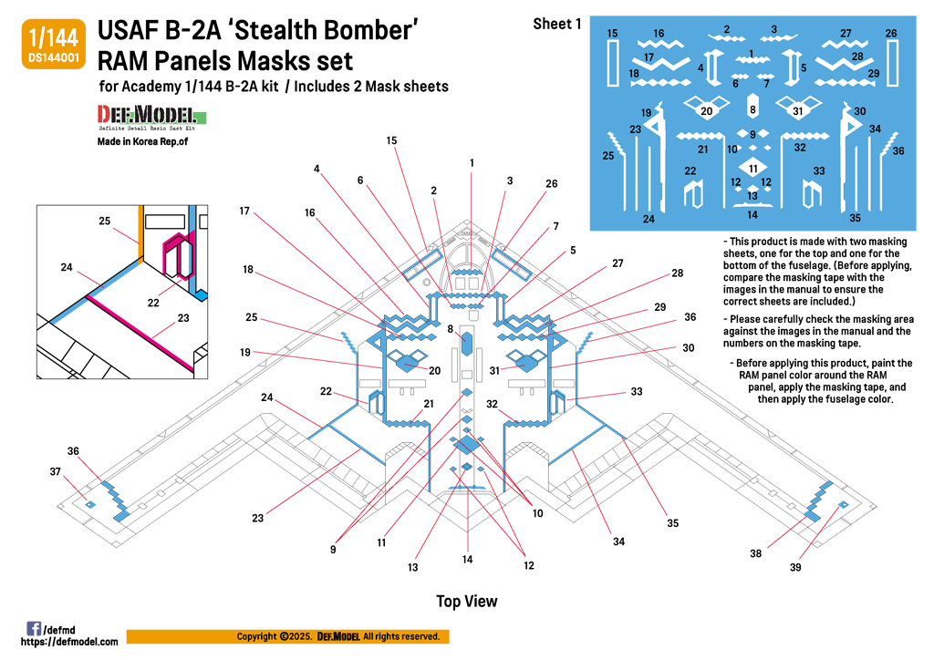 DEF.MODEL[DS144001]1/144 現用 アメリカ空軍 B-2Aスピリット爆撃機用 RAMパネルマスクシートセット(アカデミー用) [ご注文締切日 1月9日(金)2026年3月入荷予定]