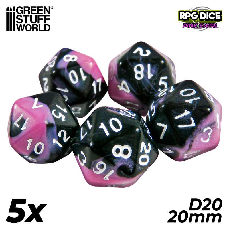 グリーンスタッフワールド[GSWD-2682]20面体ダイス20mm ピンクスワール(5個入) [NEW PRODUCTS]