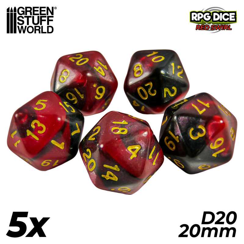 グリーンスタッフワールド[GSWD-2676]20面体ダイス20mm レッドスワール(5個入) [NEW PRODUCTS]