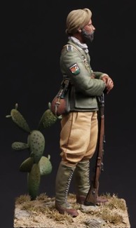 自由インド軍団は1941年にインド人兵の捕虜数百名を中心にフランケンベルクで組織されたインド人兵団です。1942年に第950歩兵大隊として正式にドイツ国防軍に編入された自由インド軍団は、1943年には3個大隊が編成されて連隊規模となりましたが、作戦には投入されず他の義勇部隊と共に守備戦力として従事しました。ノルマンディー上陸作戦において人員と装備のほとんどを失いドイツに戻った第950歩兵連隊は、武装親衛隊の外国人部隊として移管されると1944年8月に武装親衛隊インド義勇軍団として再編成されました。1945年4月にスイス国境方面に移動を開始したSSインド義勇軍団は自由フランス軍に降伏、一部の部隊はスイスへの入国を計画するも失敗に終わりアメリカ軍に投降しました。