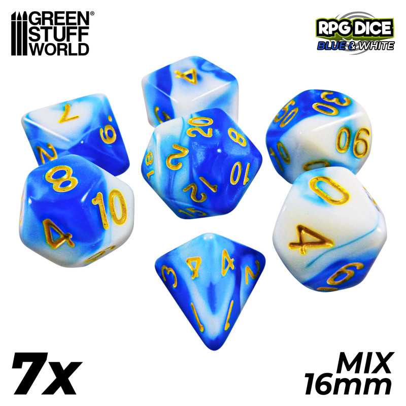 グリーンスタッフワールド[GSWD-2686]ダイスミックスセット16mm ブルーホワイト(7個入) [NEW PRODUCTS]