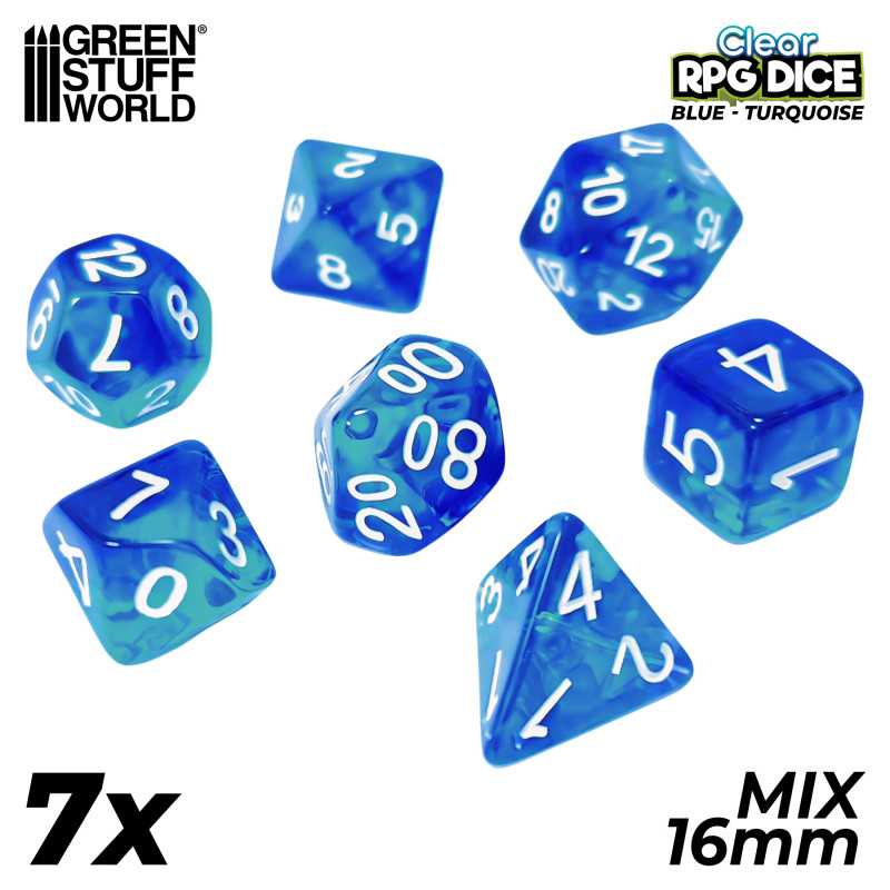 グリーンスタッフワールド[GSWD-3397]ダイスミックスセット16mm クリアーブルー×ターコイズ(7個入) [NEW PRODUCTS]