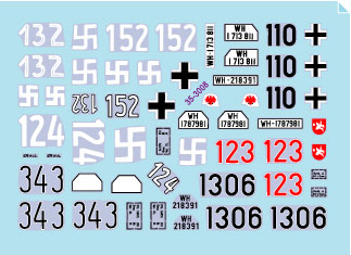 1945年のベルリン防衛戦においてベルリン郊外で戦った戦闘車両のマーキングを収録します。第4弾はIII号突撃砲G型3種類、III号突撃砲C/D型、Sd.Kfz.251/8 Ausf.Dストゥンメル、Sd.Kfz.251/21 Ausf.Dドリリンク、Sd.Kfz.251/22 Ausf.D各1種類、計7種類をセットしています。またスペア番号やステンシルもセットされ、複数のオプションを選択して製作することも可能です。