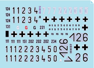 第二次大戦のアルデンヌの戦い(バルジの戦い)で、1944年12月末から開始された「ノルトヴィント作戦」に参加したパンサー戦車のマーキングを収録します。G型(部隊不明)、G型(ダイムラーベンツ製、第1SS戦車連隊LAH パイパー戦闘団)2種類、G型(第12SS戦車連隊ヒトラーユーゲント)、計4種類をセットしています。またスペア番号やステンシルもセットされ、指揮戦車G型など複数のオプションを選択して製作することも可能です。