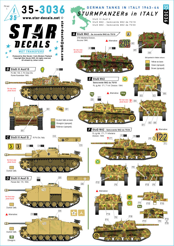 STAR DECALS[SD35-3036]1/35 WWII ドイツ イタリア戦線のドイツ突撃砲 1943-44年 III号突撃砲G型/セモベンテM42 da 75/18/セモベンテM42 da 75/34 [ご注文締切日 1月30日(金)3月入荷予定]