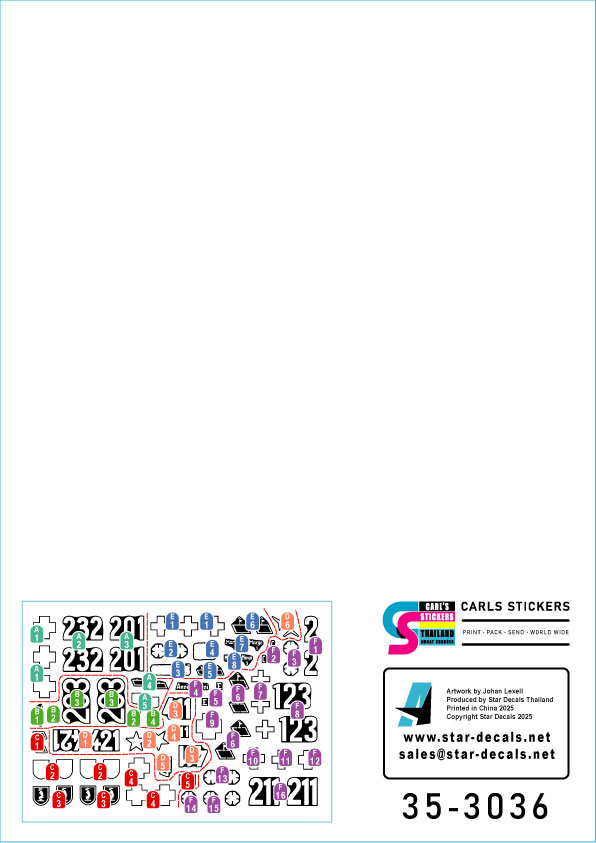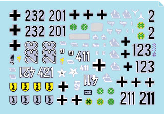 1943年から1944年にイタリアで活動したドイツ軍所属の突撃砲のマーキングを収録します。III号突撃砲G型 3種類、セモベンテM42 da 75/18 2種類、セモベンテM42 da 75/34 1種類、計6種類をセットしました。またスペア番号やステンシルもセットされ、複数のオプションを選択して製作することも可能です。