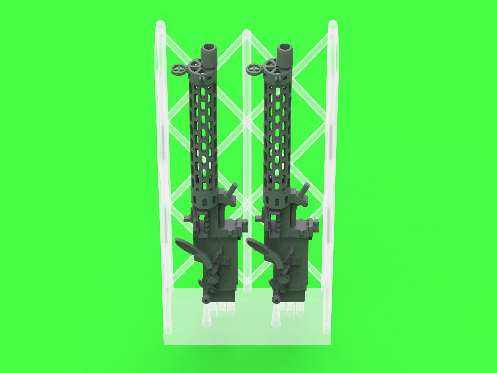 右側面の装填ハンドルが長いタイプをモデル化しています。機銃本体と放熱筒、弾帯は3Dプリント製、銃身は真鍮挽き物製をセットします。