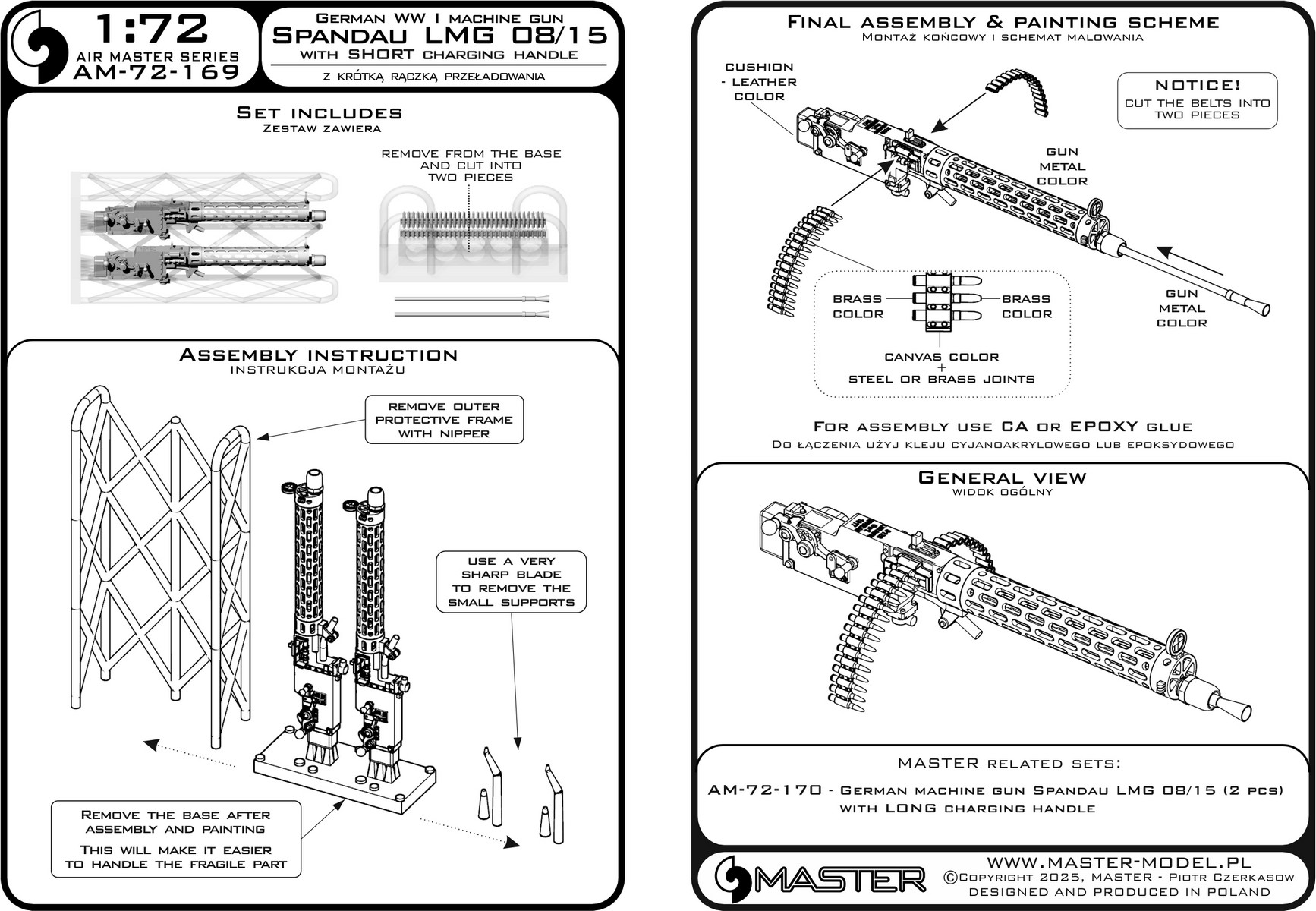 MASTER[AM-72-169]1/72 WWI ドイツ シュパンダウLMG 08/15機関銃 短装填ハンドルタイプ(2個入)