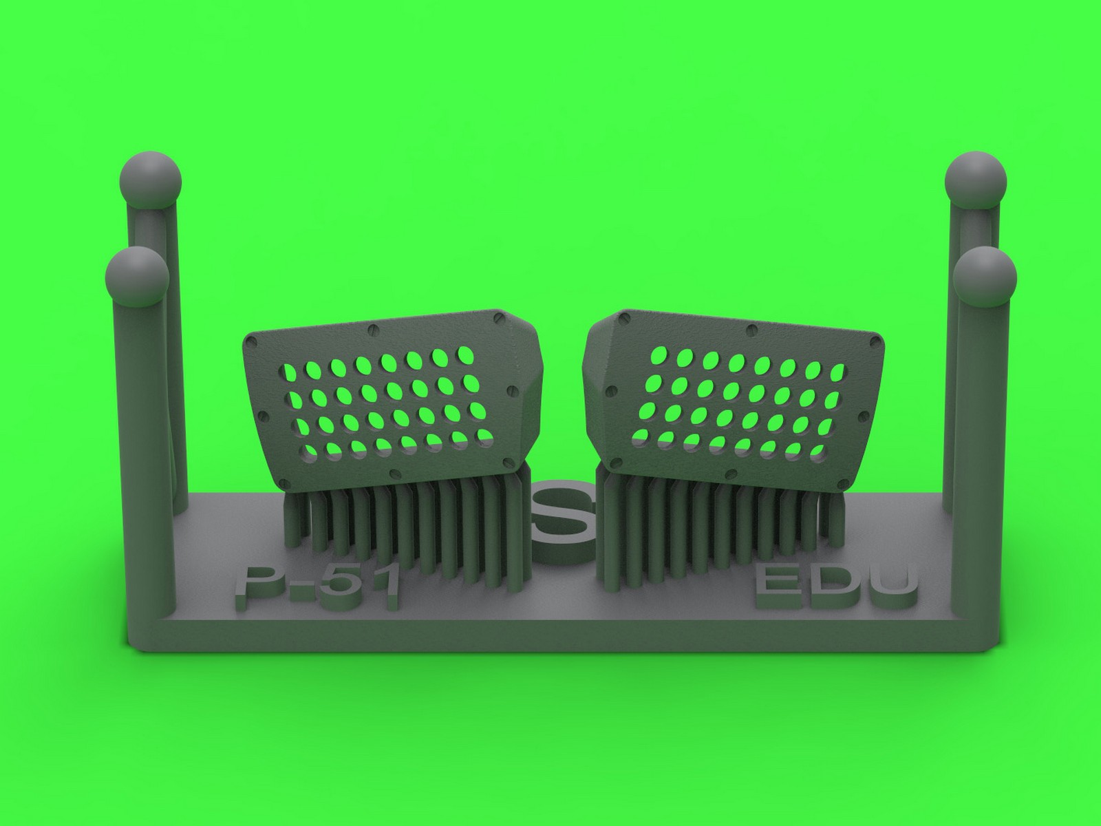 第二次大戦アメリカ軍のP-51ムスタング戦闘機の機首下部左右のキャブレターエアフィルターカバーパネルを再現するディテールパーツです。エデュアルド製キットに対応します。