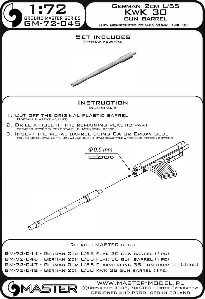 MASTER[GM-72-045]1/72 WWII ドイツ 2cm Kw.K.30機関砲砲身(汎用)