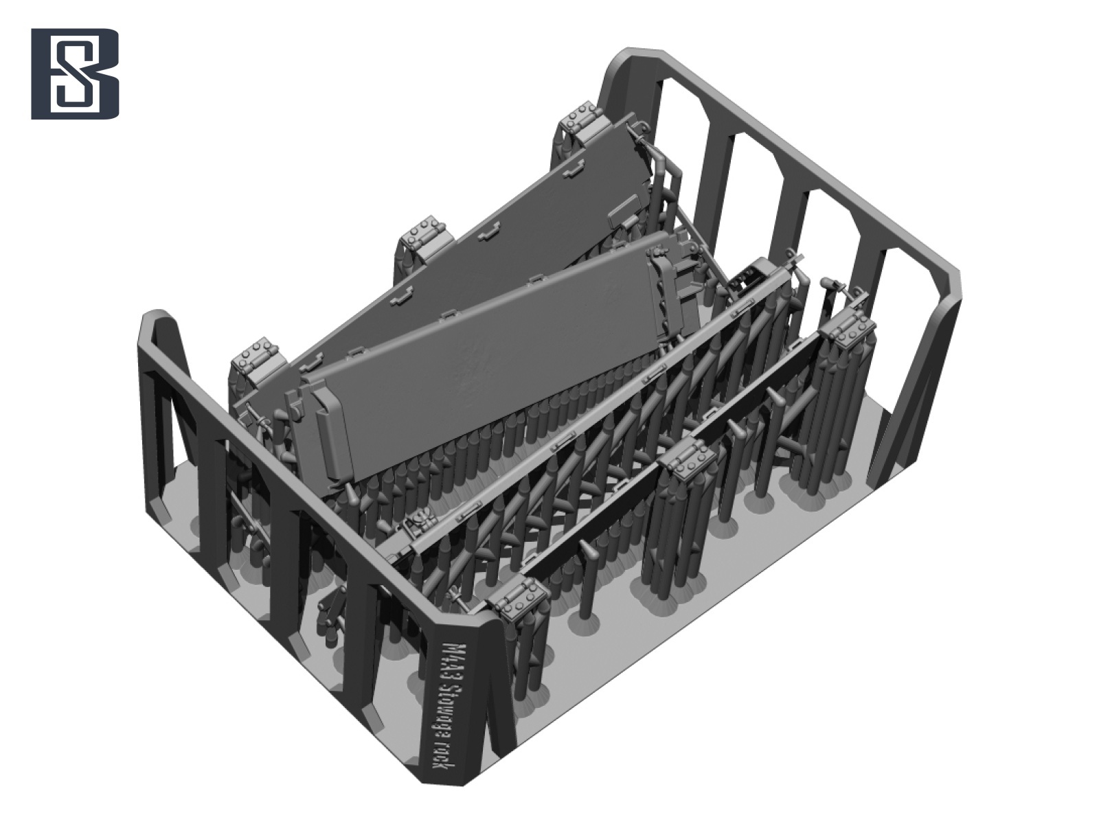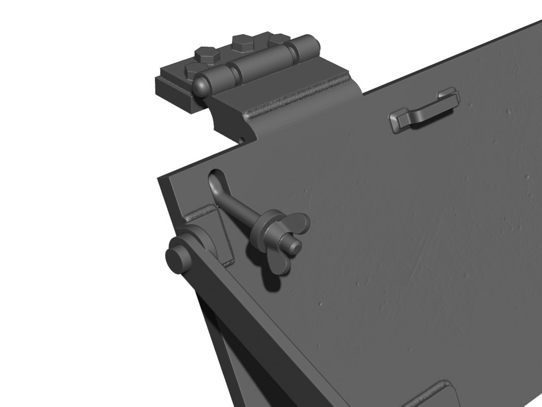 第二次大戦アメリカ軍のM4A3シャーマン中戦車の車体後面に装着される折り畳み式荷物ラックと予備履帯ホルダーを再現するディテールパーツです。タミヤ/アスカモデル/ドラゴンなど各社製キットに対応します。