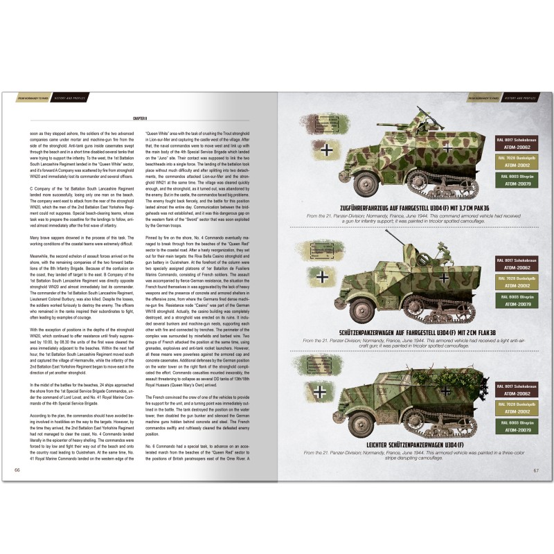 両軍で使用された車両のフルカラープロファイルを収録し、徽章やマーキングを忠実に再現しています。